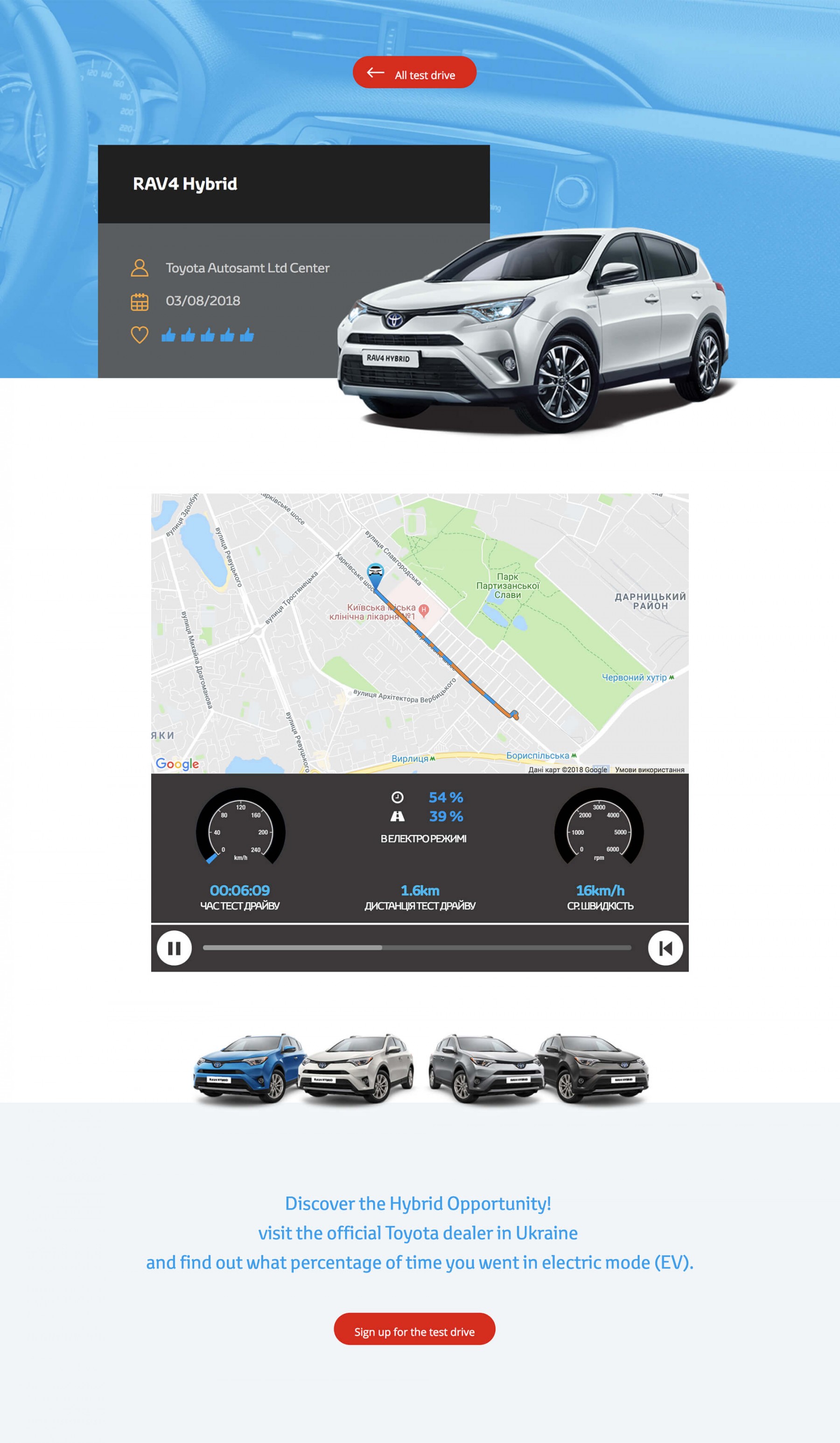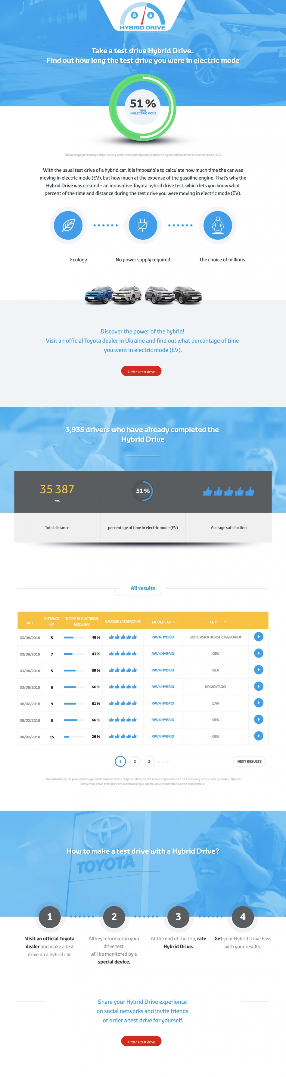 From the installed sensors in the Toyota Hubrid cars, the data was sent through the ESM module to the central server, where was organized the work of the API protocol. On the official website was installed an interactive online opportunity to view the results of all the test drives with real fuel consumption.