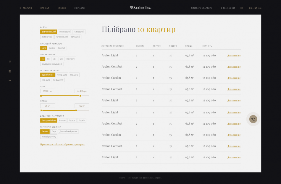 However, to increase sales through interchangeable goods - a centralized search filter for apartments according to the characteristics of all objects has been implemented.